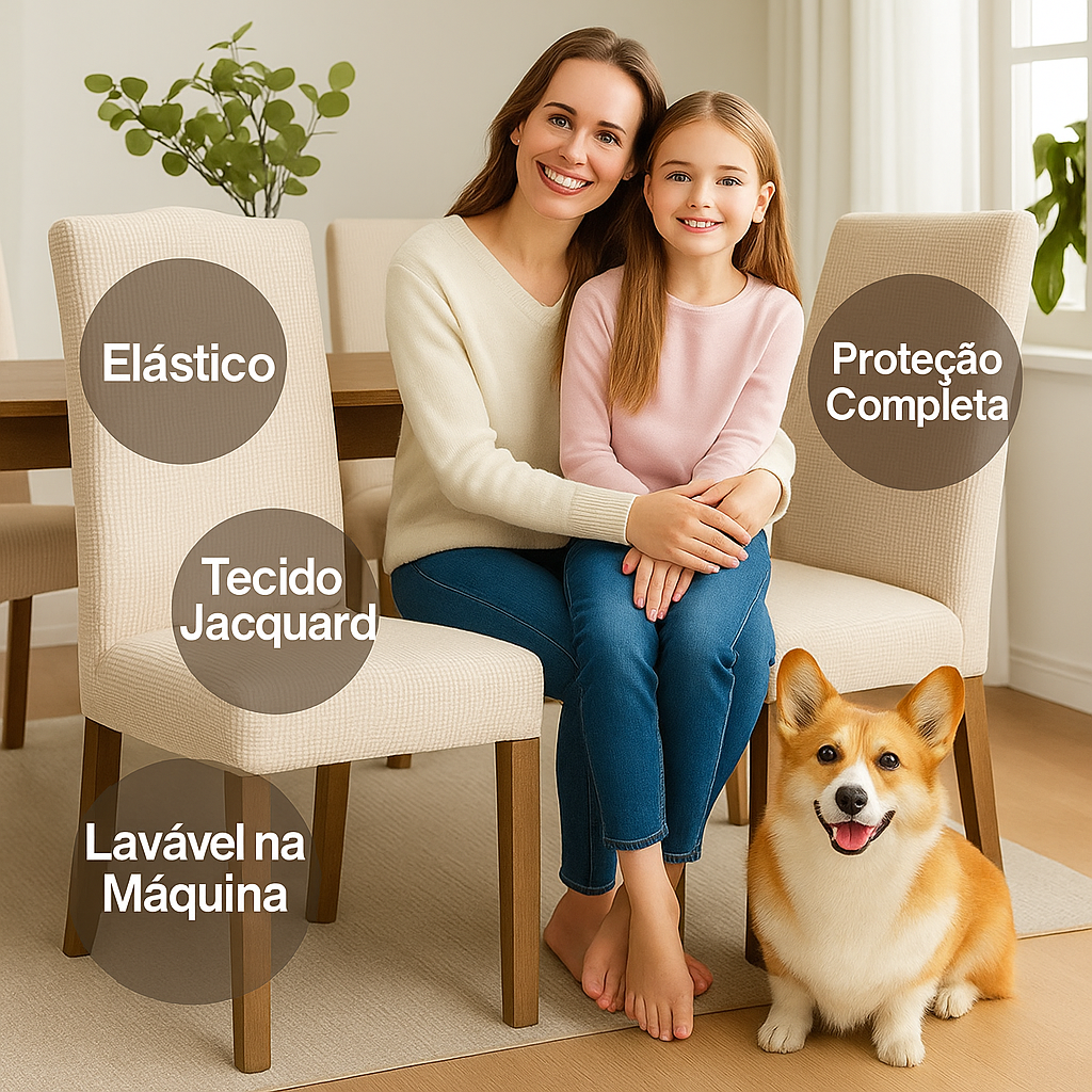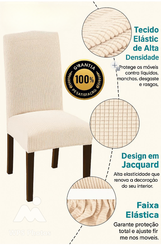 A ReviChair é fácil de colocar, simples de lavar e feita com materiais resistentes, garantindo durabilidade e conforto por muitos anos.